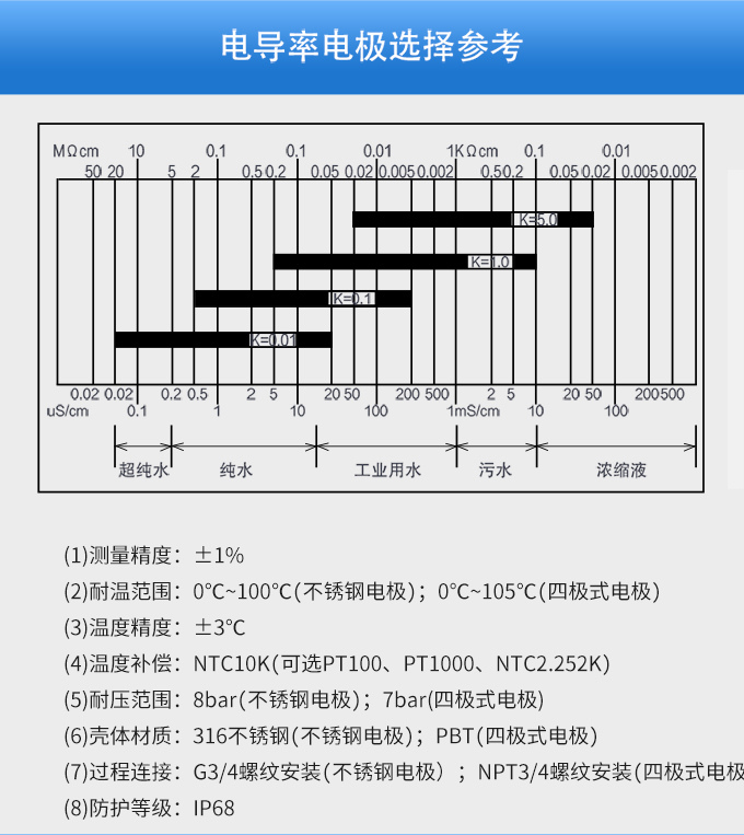 SIN-EC8.0工業電導率儀表,大屏顯示,可對各種工業用水的電導率(TDS)值進行連續測量和控制,本裝置廣泛應用于科學實驗裝備、化工、制藥、環保、冶金、造紙、食品、飲料及供水等行業。根據水工業的環境和特點結合國際供電標準,考慮了特殊環境的電氣設計規范,增加了220VAC供電。