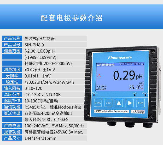 聯測大屏pH計是一款廣泛應用于火電、化工化肥、冶金、環保、制藥、生化、食品和自來水等溶液中PH值或ORP值和溫度的連續監測。 可實現數據傳輸與本地數據記錄,具備將數據上傳至環保局的功能。