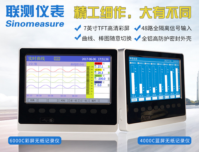 SIN-R6000C系列彩色無紙記錄儀48路(萬能輸入(可組態選擇輸入:標準電壓、標準電流、熱電偶、熱電阻、頻率、毫伏等)。可帶18路報警輸出,12個變送輸出,RS232/485通訊接口,以太網接口,微型打印機接口和USB接口,SD卡插座;可提供傳感器配電;具有強大的顯示功能,實時曲線顯示,歷史曲線追憶,棒圖顯示,報警列表顯示。人性化的外觀設計、良好的功能體現、可靠的硬件品質、精湛的制造工藝,使SIN-R6000C具有更高的性能價格比。