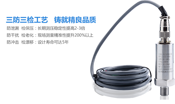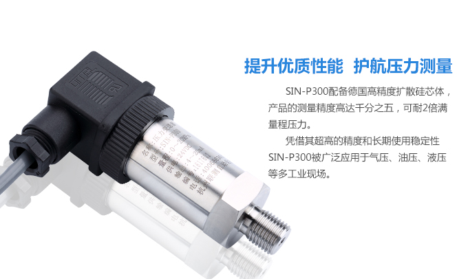 SIN-P300通用型壓力變送器德國進口硅芯片,精度高性能穩(wěn)定;SIN-P300型通用型壓力變送器采用擴散硅壓力芯體作為敏感元件,內(nèi)置處理電路將傳感器毫伏信號轉換成標準電壓﹑電流信號輸出,可直接與計算機、控制儀表﹑顯示儀表等相連。選用高穩(wěn)定性和高可靠性的壓阻式壓力傳感器和高性能的變送器專用電路,整體性能穩(wěn)定可靠,可進行遠距離信號傳輸。采用一體化全不銹鋼結構,經(jīng)過多次不銹鋼焊接,實現(xiàn)了全固態(tài)設計,安裝方便,具有高抗振性和抗擊性,在惡劣環(huán)境中可以長期使用。廣泛應用于工業(yè)自動化設備配套以及石油、化工、冶金、電力等控制領域。